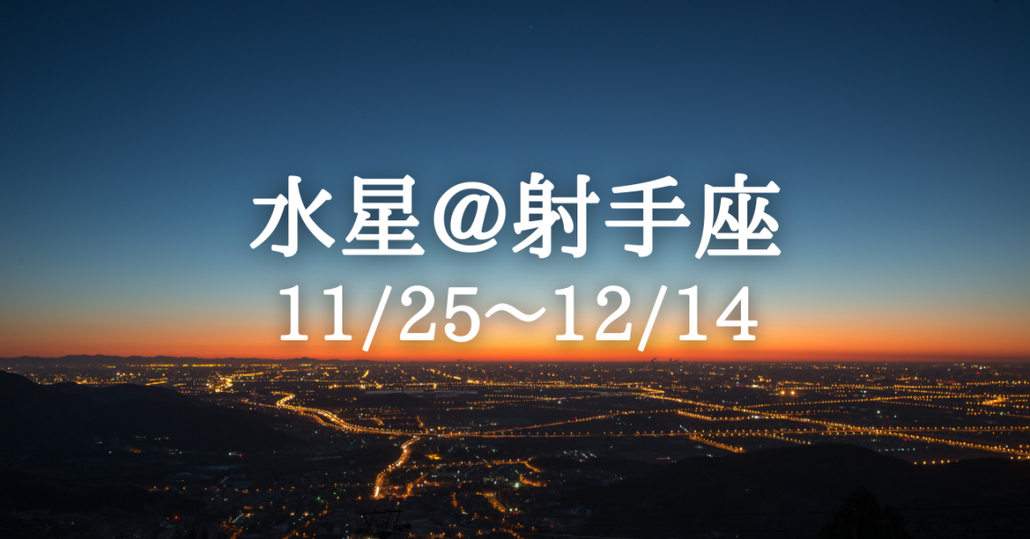 11月25日午前0時36分、コミュニケーションを司る星・水星が射手座に移動します。水星は12月14日までの約三週間をこの星座で過ごすことになります。 射手座は直情的な世界です。思い立ったら即行動、といった速さがある世界で…