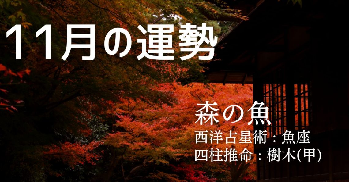 西洋占星術では、あなたは魚座タイプです。 四柱推命では、あなたは樹木(甲)タイプです。 そして、このふたつを融合したソラリタ・タイプでは、あなたは森の魚タイプとなります。 ここでは、上記三つの占術であなたの11月の運勢を…