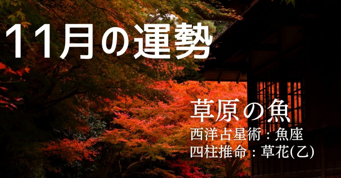 西洋占星術では、あなたは魚座タイプです。 四柱推命では、あなたは草花(乙)タイプです。 そして、このふたつを融合したソラリタ・タイプでは、あなたは草原の魚タイプとなります。 ここでは、上記三つの占術であなたの11月の運勢…