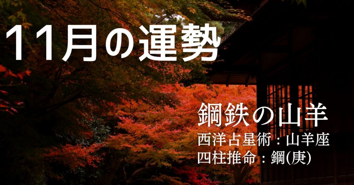 西洋占星術では、あなたは山羊座タイプです。 四柱推命では、あなたは鋼(庚)タイプです。 そして、このふたつを融合したソラリタ・タイプでは、あなたは鋼鉄の山羊タイプとなります。 ここでは、上記三つの占術であなたの11月の運…