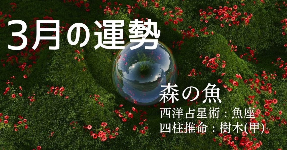 西洋占星術では、あなたは魚座タイプです。 四柱推命では、あなたは樹木(甲)タイプです。 そして、このふたつを融合したソラリタ・タイプでは、あなたは森の魚タイプとなります。 ここでは、上記三つの占術であなたの3月の運勢を占…