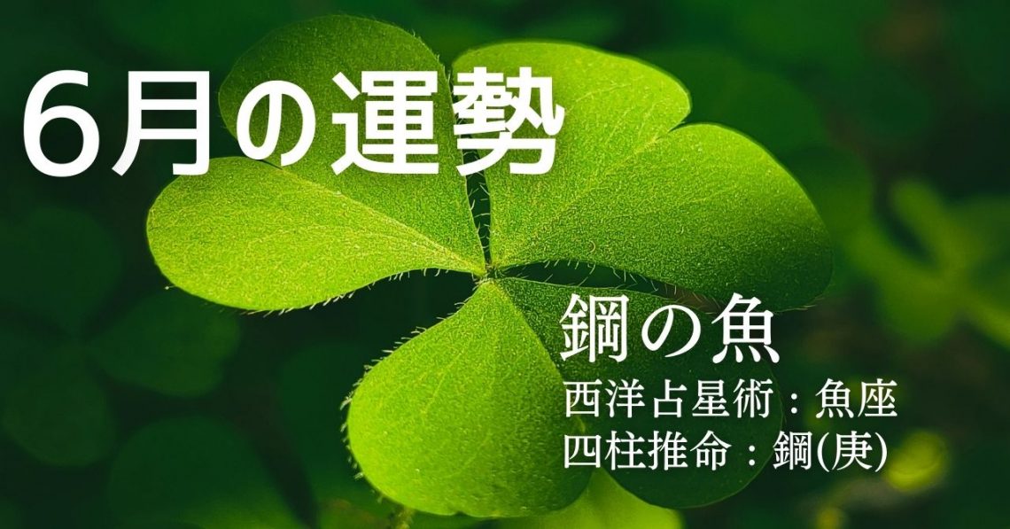 西洋占星術では、あなたは魚座タイプです。 四柱推命では、あなたは鋼(庚)タイプです。 そして、このふたつを融合したソラリタ・タイプでは、あなたは鋼の魚タイプとなります。 ここでは、上記三つの占術であなたの6月の運勢を占い…