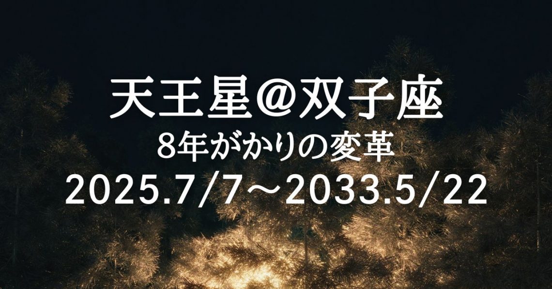 2025年7月7日、変革の星・天王星が牡牛座から双子座へと移動します。これは、じつに約八年ぶりとなる星座移動。これにより、私たちは、新たな「変革」の時代へと突入することになります。 天王星は、変革をもたらす星です。約84…