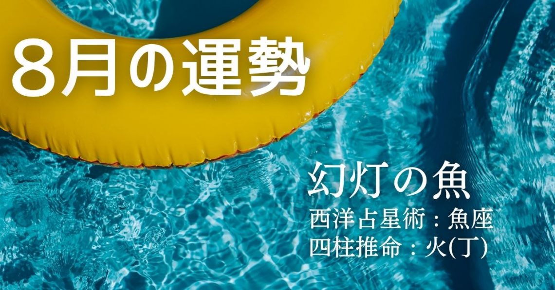 西洋占星術では、あなたは魚座タイプです。 四柱推命では、あなたは火(丁)タイプです。 そして、このふたつを融合したソラリタ・タイプでは、あなたは幻灯の魚タイプとなります。 ここでは、上記三つの占術であなたの8月の運勢を占…