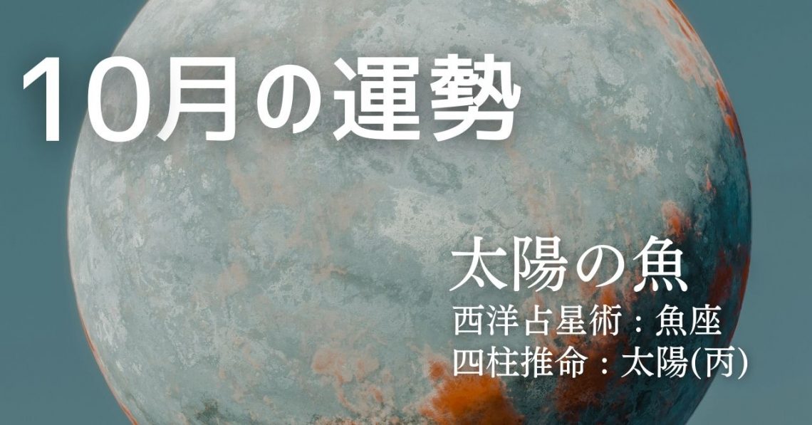 西洋占星術では、あなたは魚座タイプです。 四柱推命では、あなたは太陽(丙)タイプです。 そして、このふたつを融合したソラリタ・タイプでは、あなたは太陽の魚タイプとなります。 ここでは、上記三つの占術であなたの10月の運勢…