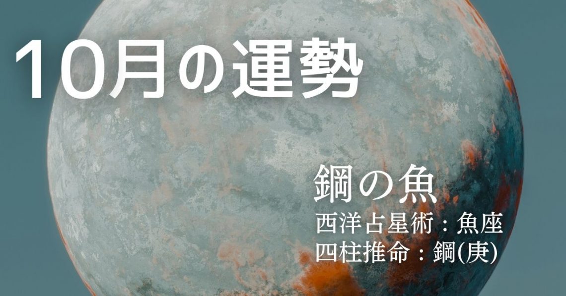 西洋占星術では、あなたは魚座タイプです。 四柱推命では、あなたは鋼(庚)タイプです。 そして、このふたつを融合したソラリタ・タイプでは、あなたは鋼の魚タイプとなります。 ここでは、上記三つの占術であなたの10月の運勢を占…