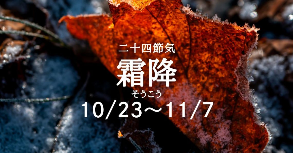 二十四節気で「霜降(そうこう)」を迎えます。 霜降とは文字通り、霜が降りる季節を意味しています。 地域によっては霜が降りるころです。 この季節は暦の上で秋から冬に変わる真っ最中と言えます。暦の注釈書『暦便覧』ではこの霜降…