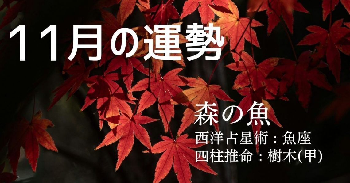 西洋占星術では、あなたは魚座タイプです。 四柱推命では、あなたは樹木(甲)タイプです。 そして、このふたつを融合したソラリタ・タイプでは、あなたは森の魚タイプとなります。 ここでは、上記三つの占術であなたの11月の運勢を…