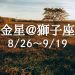 8月26日に金星は獅子座へと移動。その直後の二日間、金星は、土星、天王星、海王星という三つの星とそれぞれ深く共鳴します。「ときめき」があなたを「なにか」と繋ぐ大いなる暗示。そして、29日、天王星と海王星がじつに約60年ぶりとなる共鳴へ!