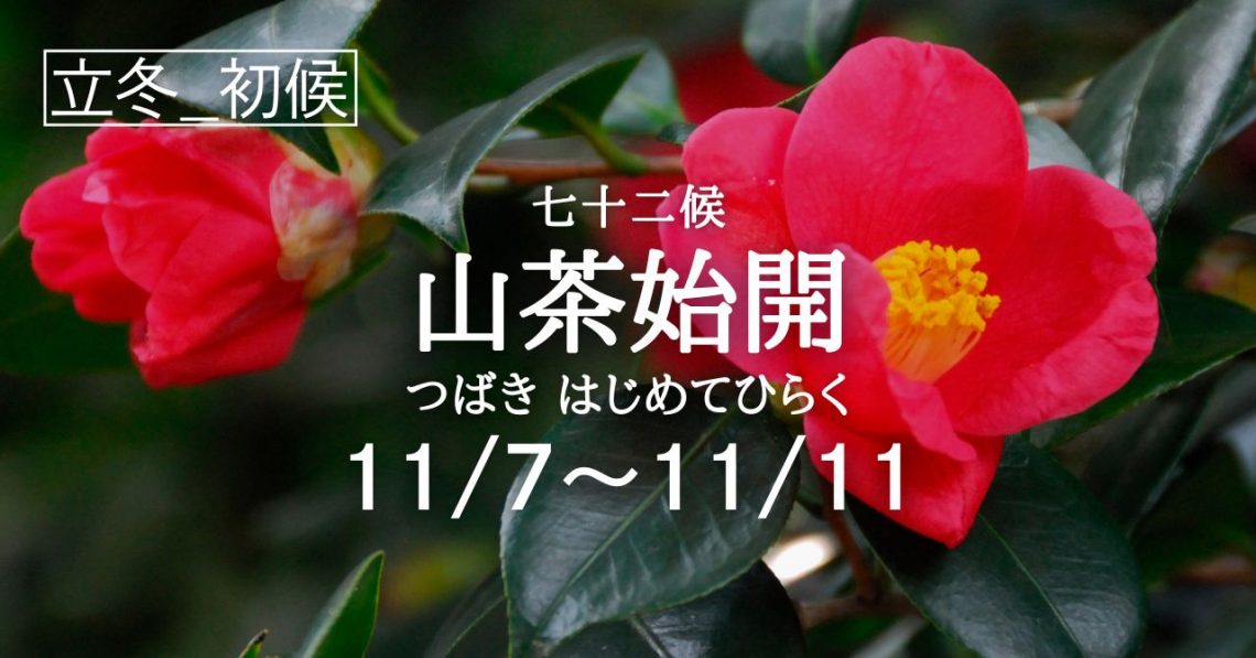 二十四節気「立冬」の初候は七十二候「山茶始開(つばき はじめて ひらく)」の5日間となります。 七十二候で「山茶始開(つばき はじめて ひらく)」という時季に入ります。 ここではツバキと読みますが「山茶」とはサザンカのこ…