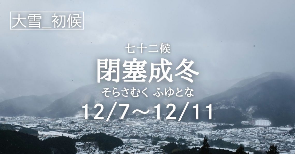二十四節気「大雪」の初候は七十二候「閉塞成冬(そらさむく ふゆとなる)」の5日間となります。 七十二候で「閉塞成冬(そらさむく ふゆとなる)」という時季に入ります。 二十四節気では「大雪(たいせつ)」を迎え、冬が本格化し…