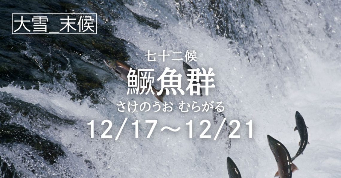 二十四節気「大雪」の末候は七十二候「鱖魚群(さけのうお むらがる)」の5日間となります。 七十二候で「鱖魚群(さけのうお むらがる)」という時季に入ります。 川で生まれて海で育った鮭は、この時季に産卵のために自分の生まれ…