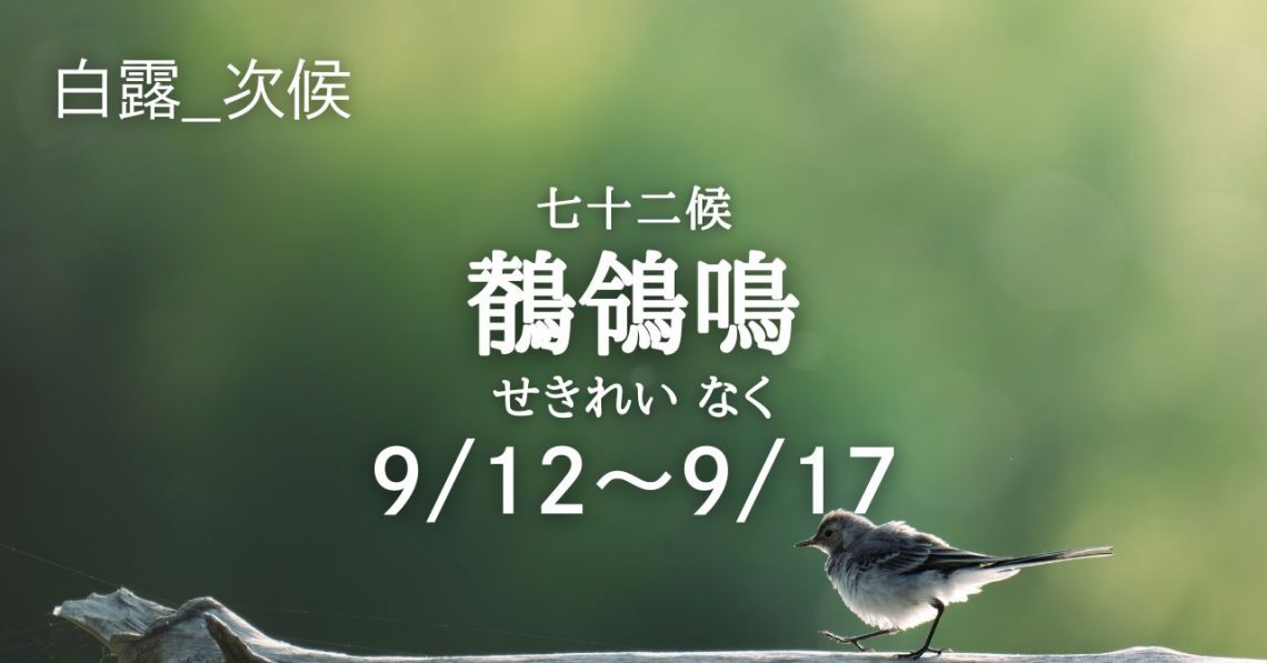 二十四節気「白露」の次候は七十二候「鶺鴒鳴 (せきれい なく)」の6日間となります。 鶺鴒はセキレイと読みます。セキレイと聞いてその姿を思い出せる人は少ないかもしれません。河川沿いや池、沼といった水辺を住処としている鳥で…