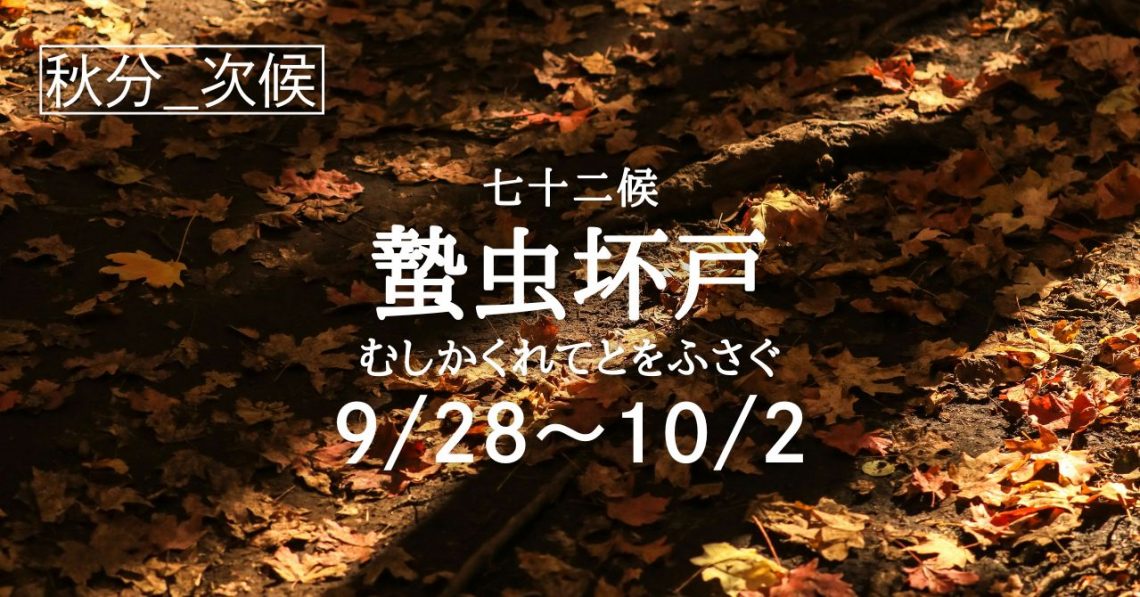 二十四節気「秋分」の次候は七十二候「蟄虫坏戸(むし かくれて とをふさぐ)」の5日間となります。 七十二候で「蟄虫坏戸(むし かくれて とをふさぐ)」の季節を迎えました。外で活動していた虫たちが冬に備えて土の中に潜り始め…