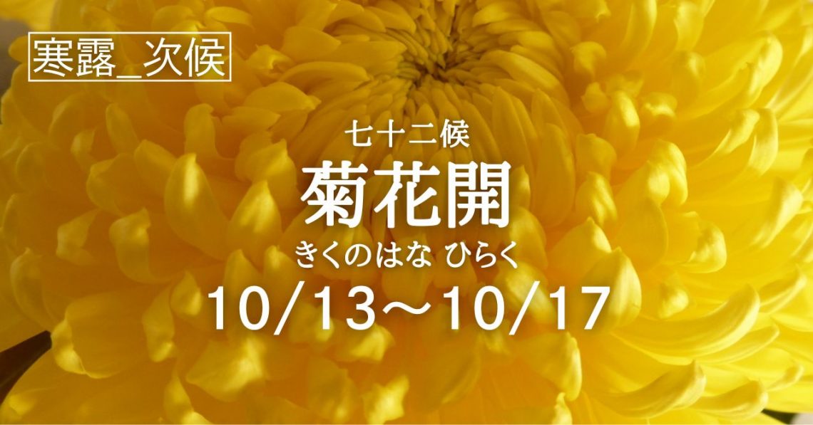 二十四節気「寒露」の次候は七十二候「菊花開(きくのはな ひらく)」の5日間となります。 七十二候で「菊花開(きくのはな ひらく)」という時季に入ります。 その言葉通り、菊の花が咲く季節という意味です。毎年9月9日は重陽の…
