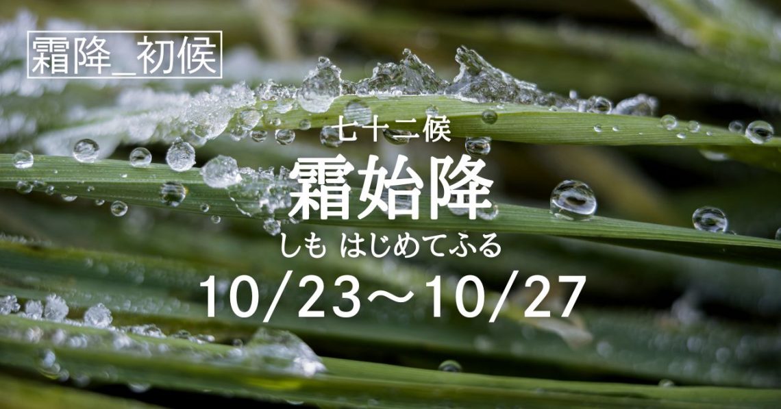二十四節気「霜降」の初候は七十二候「霜始降(しも はじめてふる)」の5日間となります。 七十二候で「霜始降(しも はじめてふる)」という時季に入ります。 二十四節気で「霜降(そうこう)」の季節に入ると同時に、七十二候で「…