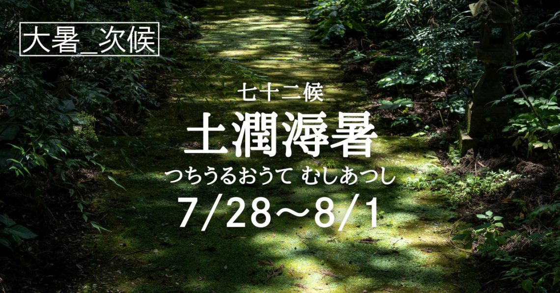 二十四節気「大暑」の次候は七十二候「土潤溽暑(つちうるおうてむしあつし) 」の5日間となります。 暦の上で一年で最も暑い季節、二十四節気で大暑を迎えています。大暑の次候として土潤溽暑の時季が巡ってくるのですが、その文字面…