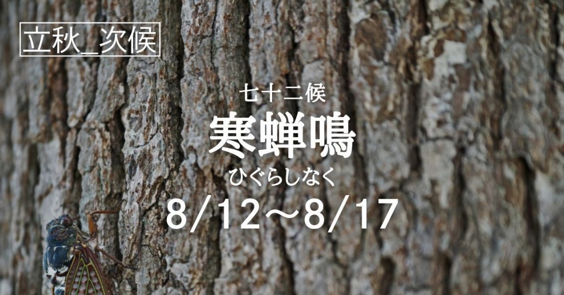 二十四節気「立秋」の次候は七十二候「寒蝉鳴(ひぐらしなく)」の5日間となります。 二十四節気の「立秋」も中盤に入ろうとしています。七十二候では「寒蝉鳴(ひぐらしなく)」の時季となりました。 いまくらいの時期にひぐらしが鳴…