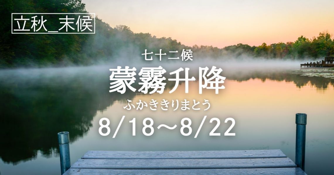 二十四節気「立秋」の末候は七十二候「蒙霧升降(ふかききりまとう)」の5日間となります。 「立秋」の季節ももう終盤に入ろうとしています。七十二候では「蒙霧升降(ふかききりまとう)」という時季を迎えました。 朝や夕方は空気が…