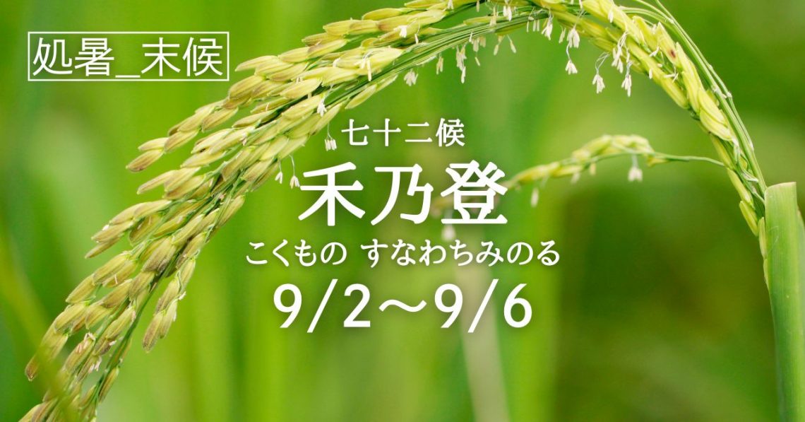 二十四節気「処暑」の末候は七十二候「禾乃登 (こくものすなわちみのる)」の5日間となります。 暦の上での秋は、しだいに深まっていきます。 こくもの すなわち みのる。実りの秋という言葉がありますが、さまざまな穀物が実り始…