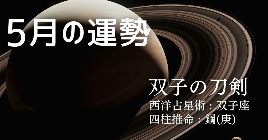 西洋占星術では、あなたは双子座タイプです。 四柱推命では、あなたは鋼(庚)タイプです。 そして、このふたつを融合したソラリタ・タイプでは、あなたは双子の刀剣タイプとなります。 ここでは、上記三つの占術であなたの5月の運勢…