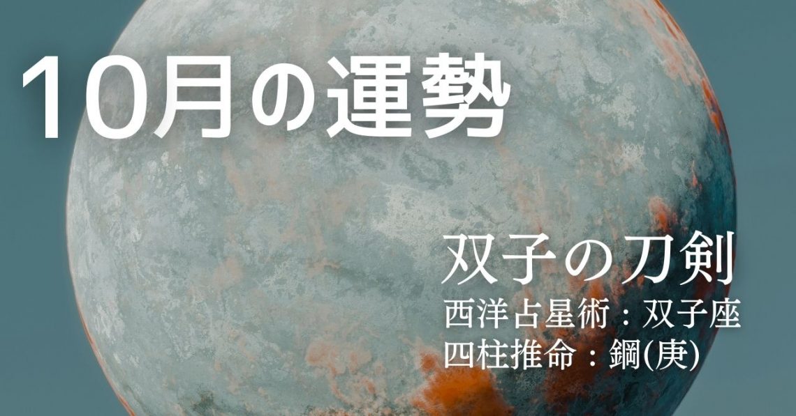 西洋占星術では、あなたは双子座タイプです。 四柱推命では、あなたは鋼(庚)タイプです。 そして、このふたつを融合したソラリタ・タイプでは、あなたは双子の刀剣タイプとなります。 ここでは、上記三つの占術であなたの10月の運…