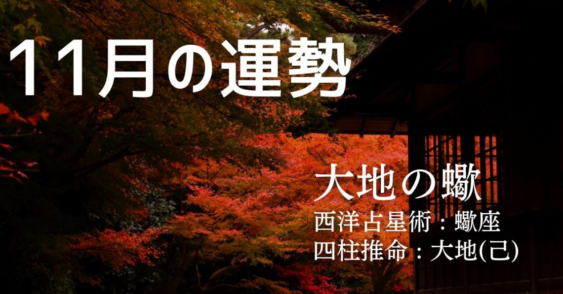 西洋占星術では、あなたは蠍座タイプです。 四柱推命では、あなたは大地(己)タイプです。 そして、このふたつを融合したソラリタ・タイプでは、あなたは大地の蠍タイプとなります。 ここでは、上記三つの占術であなたの11月の運勢…