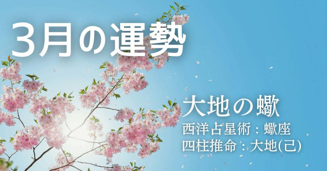 西洋占星術では、あなたは蠍座タイプです。 四柱推命では、あなたは大地(己)タイプです。 そして、このふたつを融合したソラリタ・タイプでは、あなたは大地の蠍タイプとなります。 ここでは、上記三つの占術であなたの3月の運勢を…