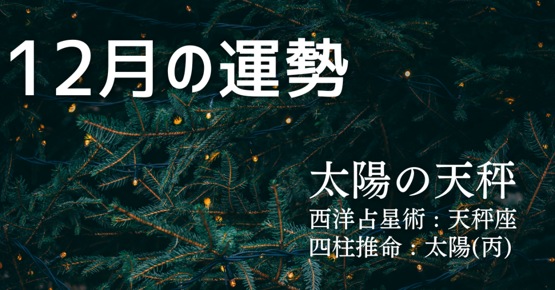 西洋占星術で天秤座タイプ、四柱推命で太陽(丙)タイプの人の12月の運勢 西洋占星術では、あなたは天秤座タイプです。 四柱推命では、あなたは太陽(丙)タイプです。 そして、このふたつを融合したソラリタ・タイプでは、あなたは…