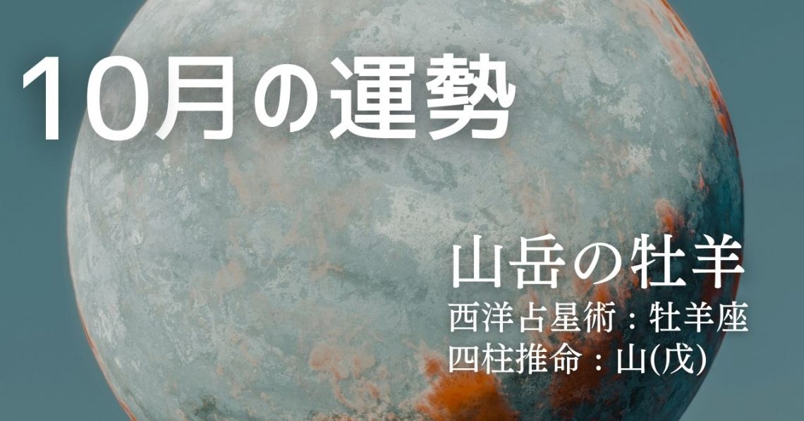 西洋占星術では、あなたは牡羊座タイプです。 四柱推命では、あなたは山(戊)タイプです。 そして、このふたつを融合したソラリタ・タイプでは、あなたは山岳の牡羊タイプとなります。 ここでは、上記三つの占術であなたの10月の運…