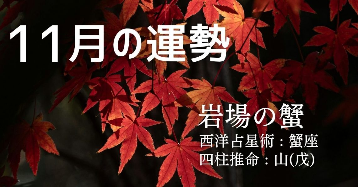 西洋占星術では、あなたは蟹座タイプです。 四柱推命では、あなたは山(戊)タイプです。 そして、このふたつを融合したソラリタ・タイプでは、あなたは岩場の蟹タイプとなります。 ここでは、上記三つの占術であなたの11月の運勢を…