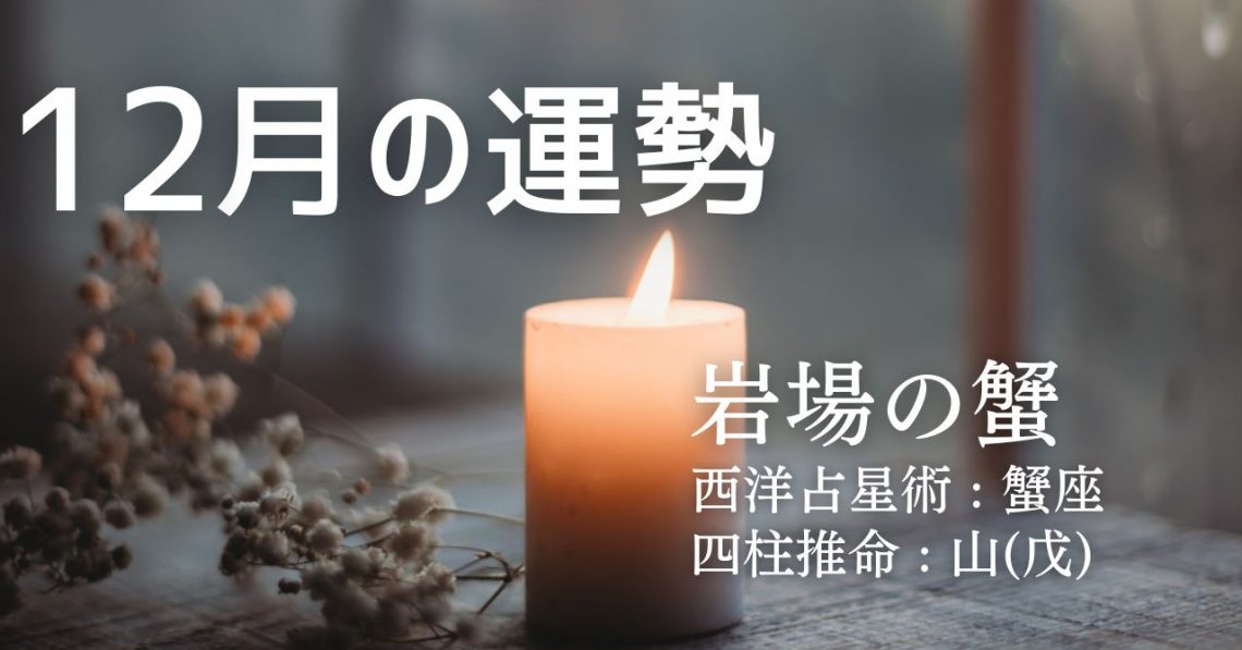 西洋占星術では、あなたは蟹座タイプです。 四柱推命では、あなたは山(戊)タイプです。 そして、このふたつを融合したソラリタ・タイプでは、あなたは岩場の蟹タイプとなります。 ここでは、上記三つの占術であなたの12月の運勢を…