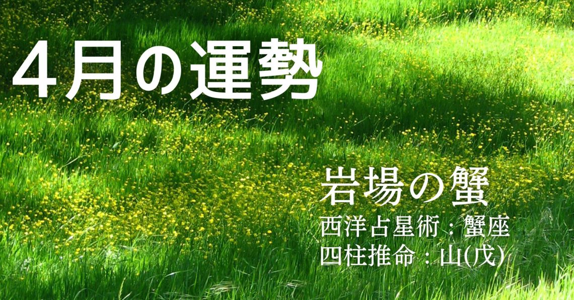 西洋占星術で蟹座タイプ、四柱推命で山(戊)タイプの人の4月の運勢 西洋占星術では、あなたは蟹座タイプです。 四柱推命では、あなたは山(戊)タイプです。 そして、このふたつを融合したソラリタ・タイプでは、あなたは岩場の蟹タ…