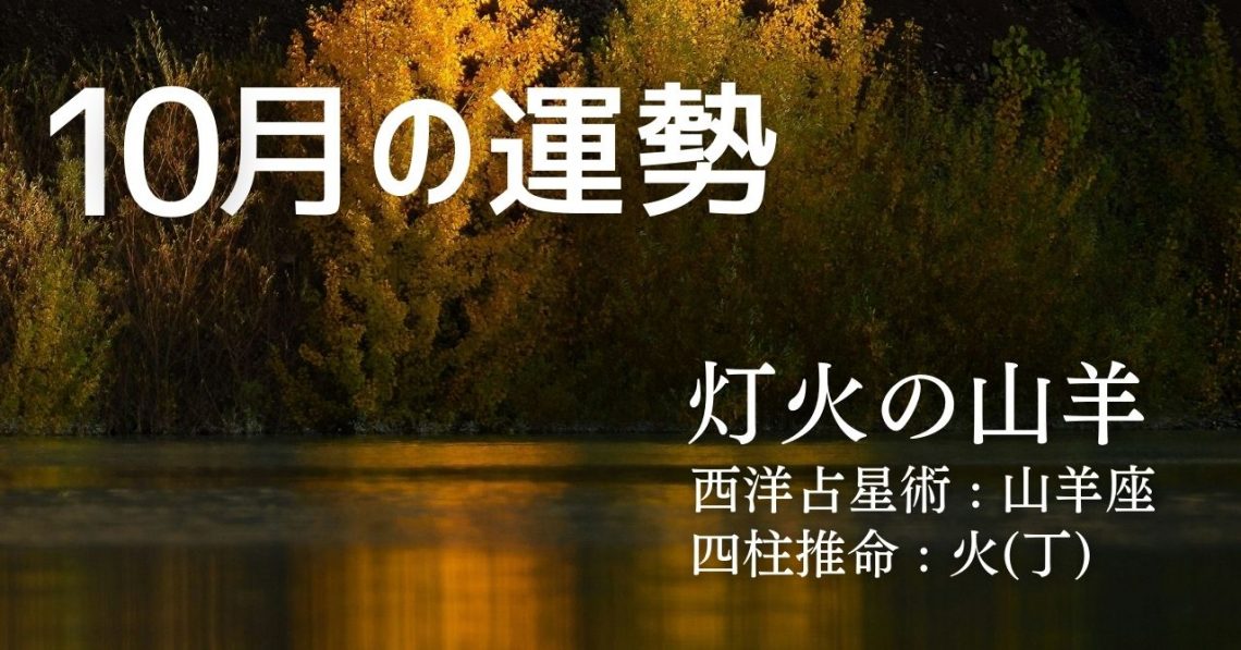西洋占星術では、あなたは山羊座タイプです。 四柱推命では、あなたは火(丁)タイプです。 そして、このふたつを融合したソラリタ・タイプでは、あなたは灯火の山羊タイプとなります。 ここでは、上記三つの占術であなたの10月の運…