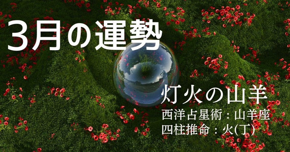 西洋占星術では、あなたは山羊座タイプです。 四柱推命では、あなたは火(丁)タイプです。 そして、このふたつを融合したソラリタ・タイプでは、あなたは灯火の山羊タイプとなります。 ここでは、上記三つの占術であなたの3月の運勢…