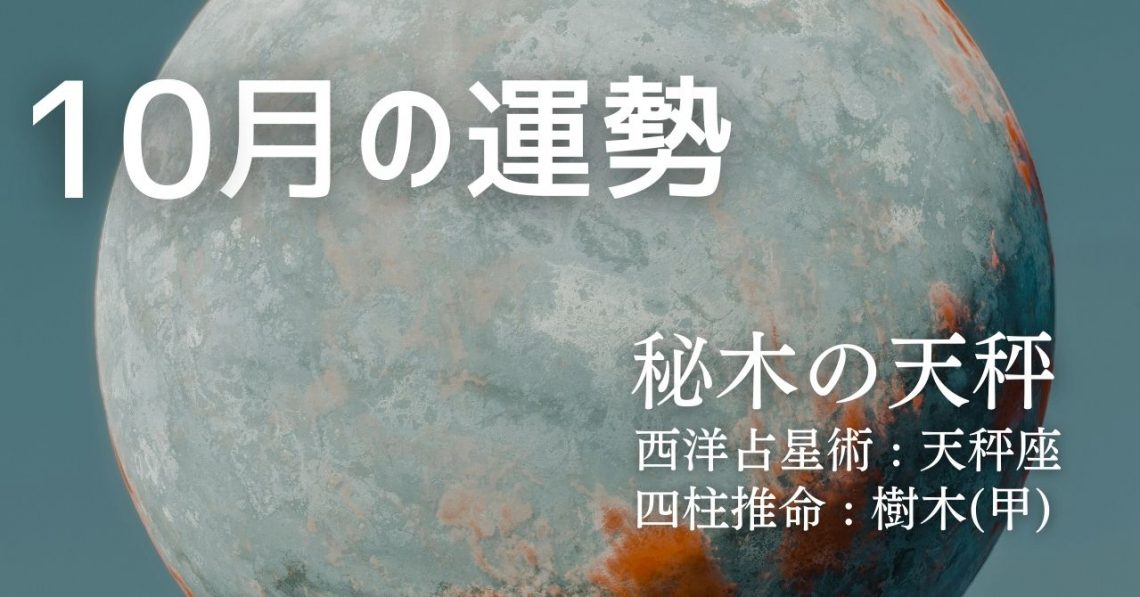 西洋占星術では、あなたは天秤座タイプです。 四柱推命では、あなたは樹木(甲)タイプです。 そして、このふたつを融合したソラリタ・タイプでは、あなたは秘木の天秤タイプとなります。 ここでは、上記三つの占術であなたの10月の…