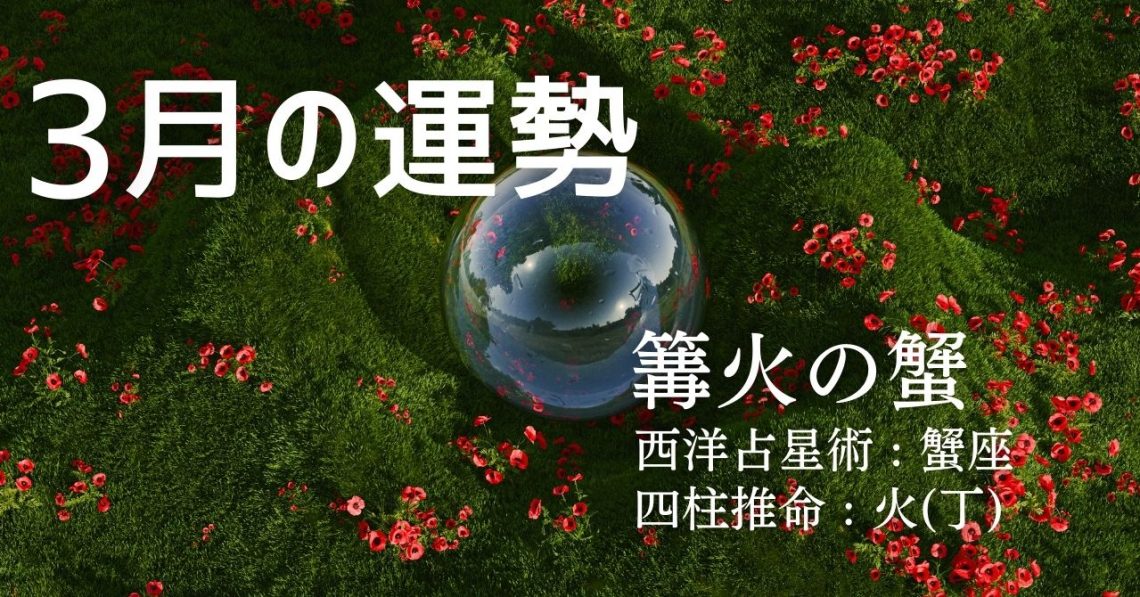 西洋占星術では、あなたは蟹座タイプです。 四柱推命では、あなたは火(丁)タイプです。 そして、このふたつを融合したソラリタ・タイプでは、あなたは篝火の蟹タイプとなります。 ここでは、上記三つの占術であなたの3月の運勢を占…