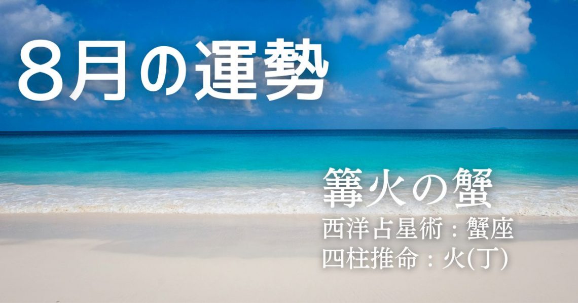 西洋占星術では、あなたは蟹座タイプです。 四柱推命では、あなたは火(丁)タイプです。 そして、このふたつを融合したソラリタ・タイプでは、あなたは篝火の蟹タイプとなります。 ここでは、上記三つの占術であなたの8月の運勢を占…
