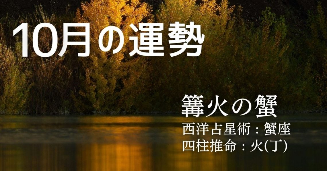 西洋占星術では、あなたは蟹座タイプです。 四柱推命では、あなたは火(丁)タイプです。 そして、このふたつを融合したソラリタ・タイプでは、あなたは篝火の蟹タイプとなります。 ここでは、上記三つの占術であなたの10月の運勢を…