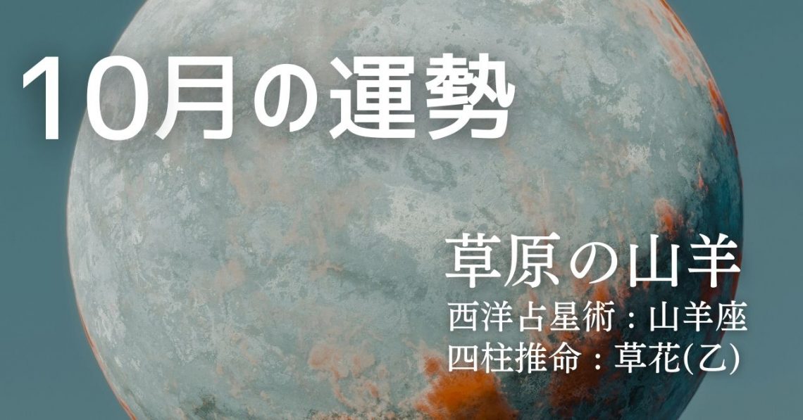 西洋占星術では、あなたは山羊座タイプです。 四柱推命では、あなたは草花(乙)タイプです。 そして、このふたつを融合したソラリタ・タイプでは、あなたは草原の山羊タイプとなります。 ここでは、上記三つの占術であなたの10月の…