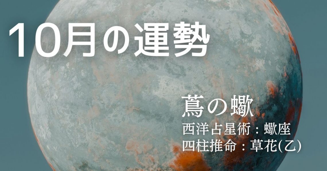 西洋占星術では、あなたは蠍座タイプです。 四柱推命では、あなたは草花(乙)タイプです。 そして、このふたつを融合したソラリタ・タイプでは、あなたは蔦の蠍タイプとなります。 ここでは、上記三つの占術であなたの10月の運勢を…