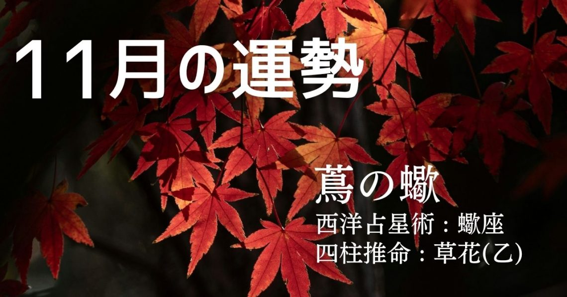 西洋占星術では、あなたは蠍座タイプです。 四柱推命では、あなたは草花(乙)タイプです。 そして、このふたつを融合したソラリタ・タイプでは、あなたは蔦の蠍タイプとなります。 ここでは、上記三つの占術であなたの11月の運勢を…