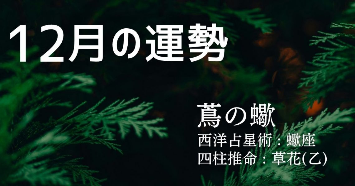 西洋占星術では、あなたは蠍座タイプです。 四柱推命では、あなたは草花(乙)タイプです。 そして、このふたつを融合したソラリタ・タイプでは、あなたは蔦の蠍タイプとなります。 ここでは、上記三つの占術であなたの12月の運勢を…