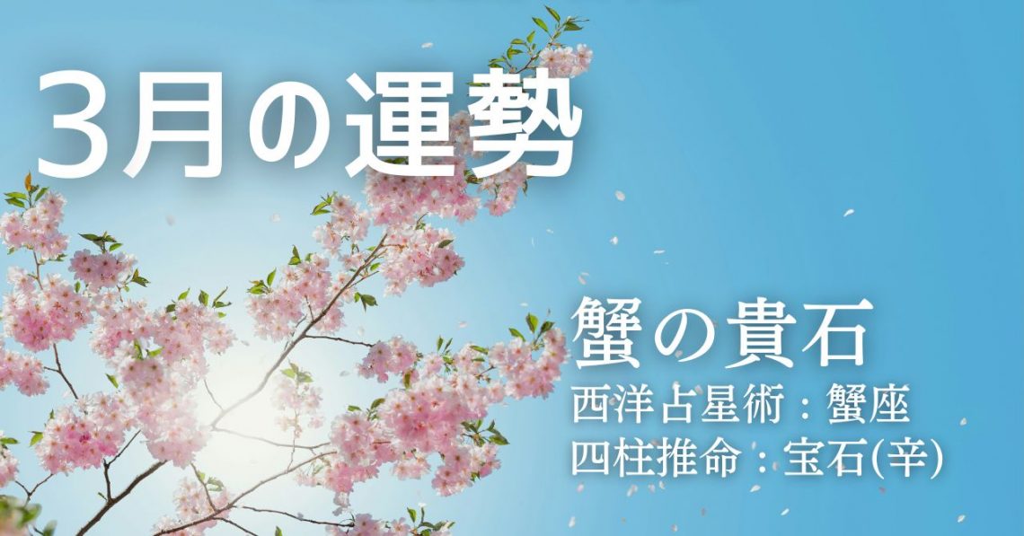 西洋占星術では、あなたは蟹座タイプです。 四柱推命では、あなたは宝石(辛)タイプです。 そして、このふたつを融合したソラリタ・タイプでは、あなたは蟹の貴石タイプとなります。 ここでは、上記三つの占術であなたの3月の運勢を…
