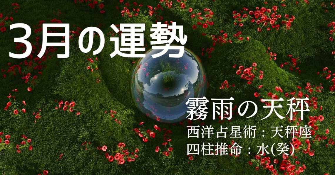 西洋占星術では、あなたは天秤座タイプです。 四柱推命では、あなたは水(癸)タイプです。 そして、このふたつを融合したソラリタ・タイプでは、あなたは霧雨の天秤タイプとなります。 ここでは、上記三つの占術であなたの3月の運勢…