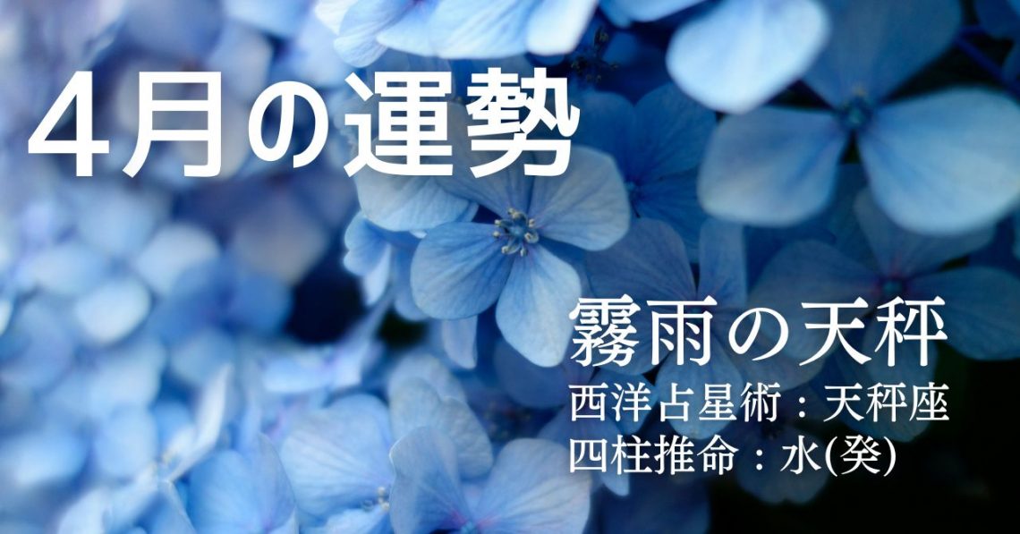 西洋占星術では、あなたは天秤座タイプです。 四柱推命では、あなたは水(癸)タイプです。 そして、このふたつを融合したソラリタ・タイプでは、あなたは霧雨の天秤タイプとなります。 ここでは、上記三つの占術であなたの4月の運勢…